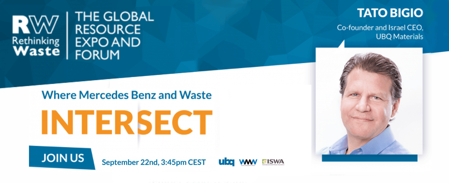Join us for a talk on “Where Mercedez Benz and Waste Intersect”, on September 22 at 3:45 p.m CEST, to be given by Tato Bigio, Co-Founder of UBQ Materials and CEO of UBQ Israel.